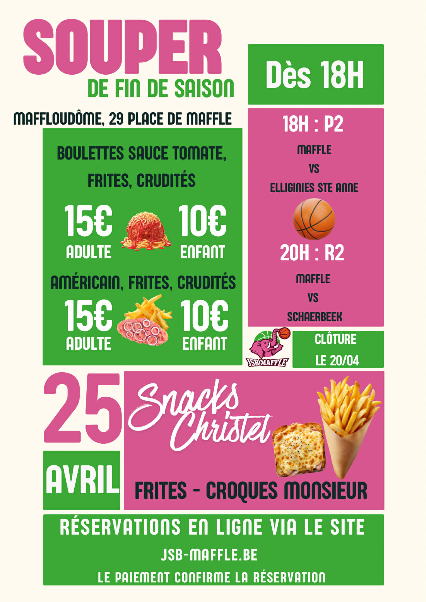 Réservation repas du 25 avril 2026 de la JSB Maffle.